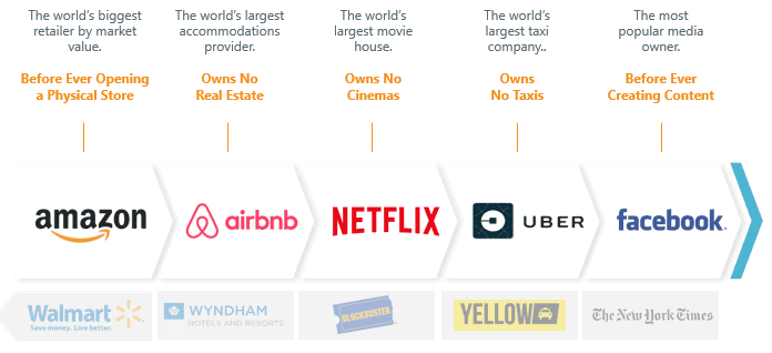 Ví dụ cũng tương tự như Amazon cũng đặt nền tảng từ việc chuyển các quyển sách sang ebook và sau cùng là 1 platform thương mại điện tử lớn nhất thế giới.