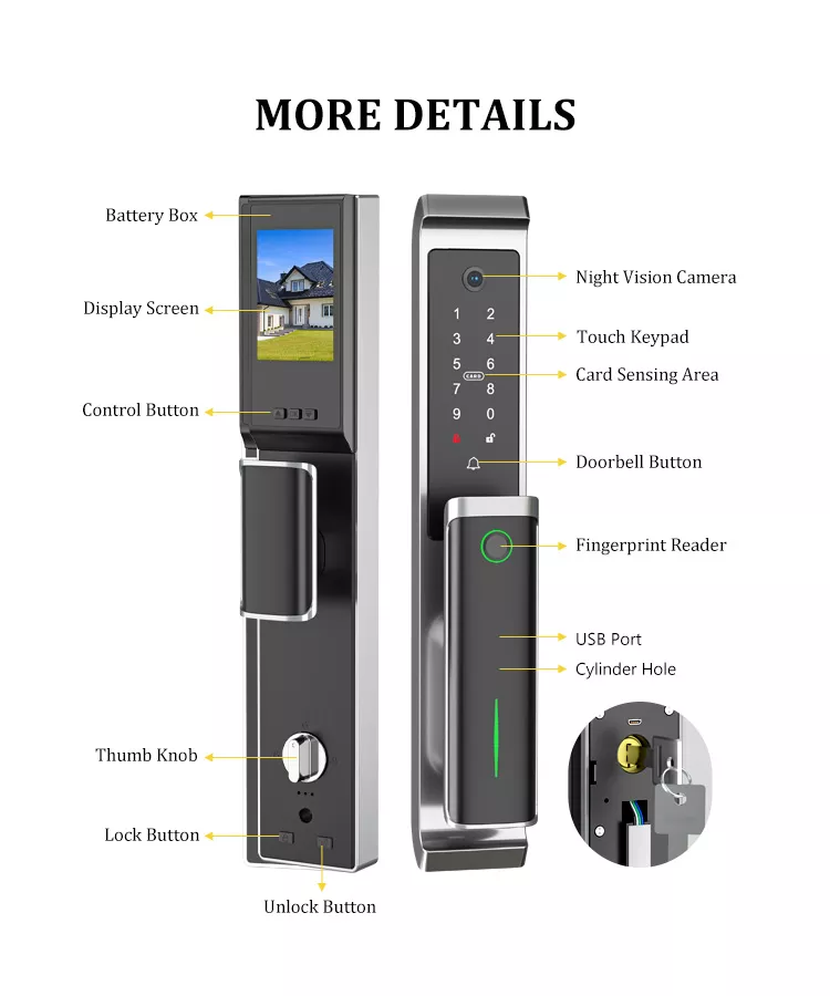 | Cách mở khóa | App, Vân tay, mật khẩu, thẻ từ, chìa cơ |