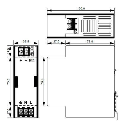 dễ dàng gắn vào thanh ray TS35 DIN. Và giải pháp gắn khung có thể cho phép người dùng gắn PSU trên bảng điều khiển