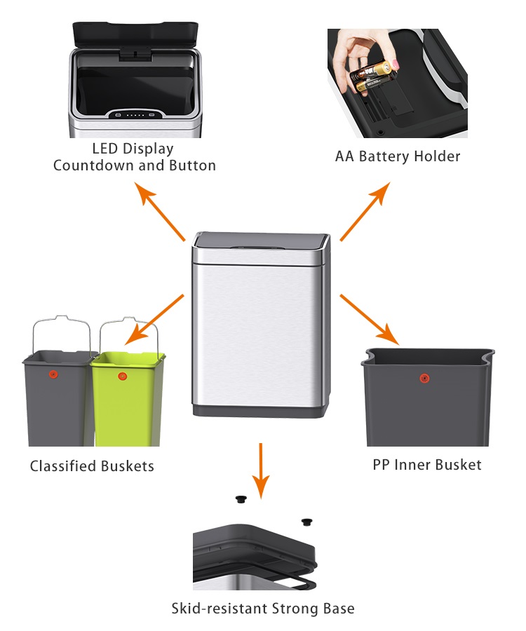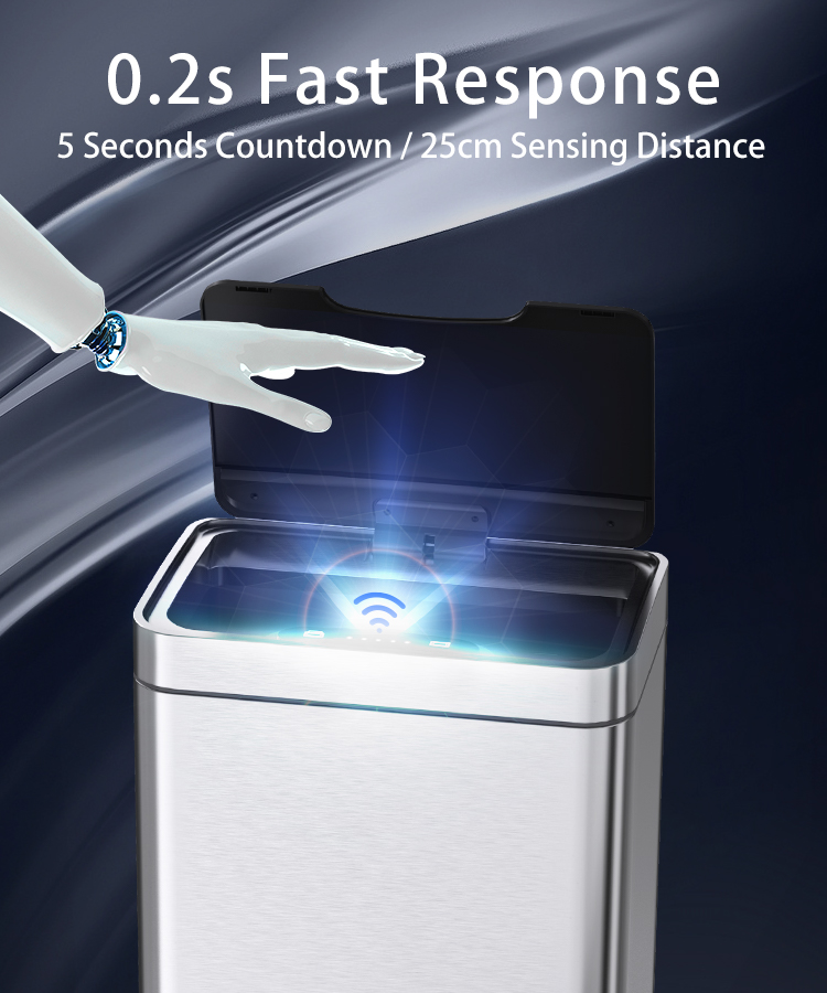 - Không cần chạm mà tự động mở nắp, tránh tiếp xúc trực tiếp với những túi rác ướt át, bốc mùi thùng rác cảm biến tự động mở nắp của chúng tôi sẽ giải quyết vấn đề đó giúp bạn